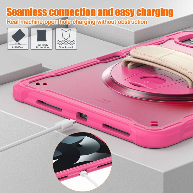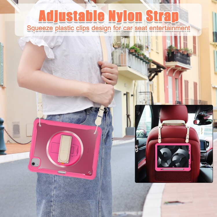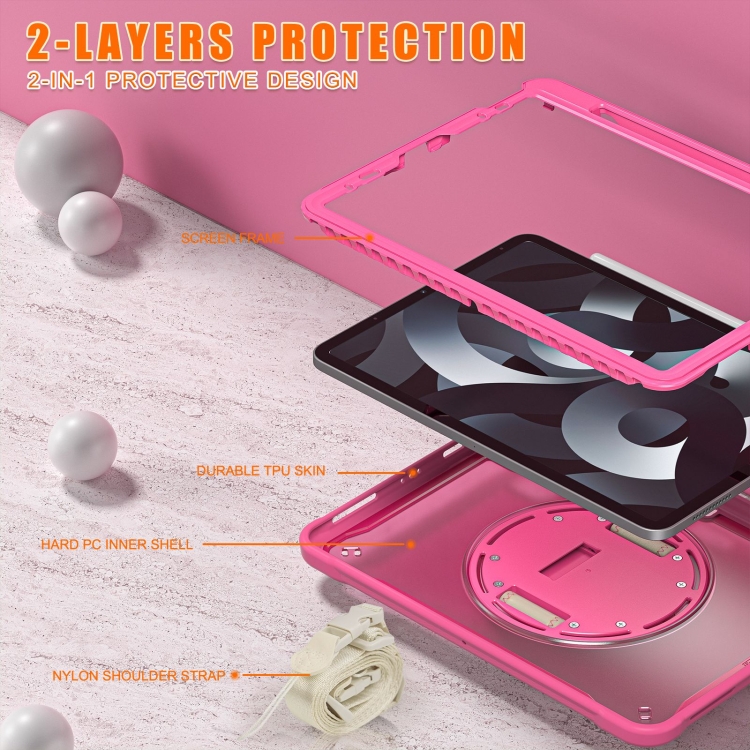 Estuche híbrido para tableta iPad Air 2022 10.9 Pro 11 2022 resistente con asa y correa (Rojo Rosa)