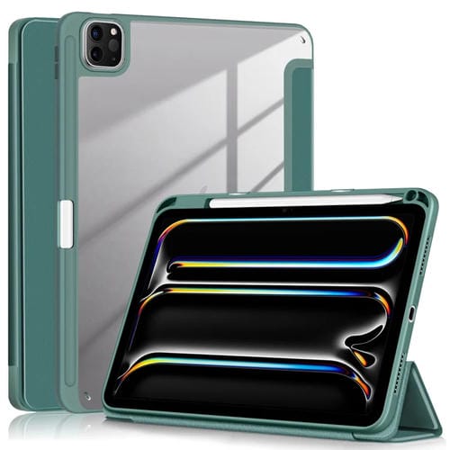 Funda de Cuero Inteligente 3 Pliegues para iPad Pro 11 (2024) (Verde Oscuro)