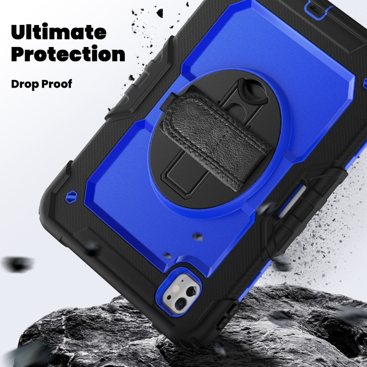 Funda híbrida de silicona para iPad Pro 11 (2024) con correa para el hombro (Azul Oscuro y Negro)