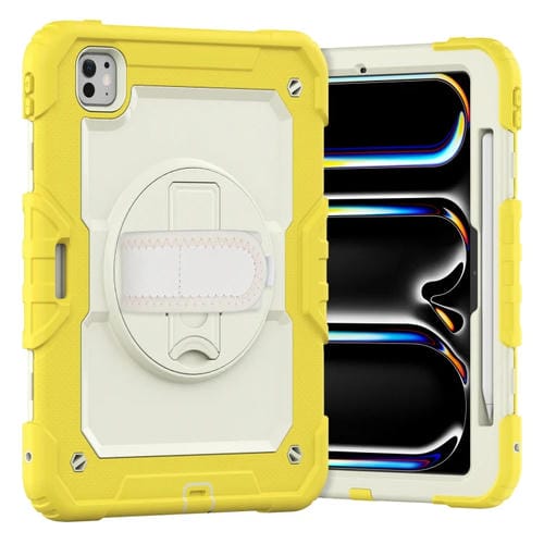 Funda híbrida de silicona para iPad Pro 11 (2024) con correa para el hombro (Beige y Amarillo)