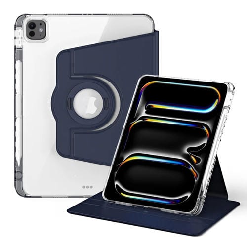 Funda de Piel Acrílica Transparente Desmontable con Rotación 360 para iPad Pro 11 (2024) (Azul Oscuro)
