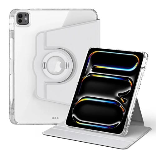 Pour iPad Pro 13 2024 Étui pour tablette en cuir acrylique transparent détachable à rotation 360 (gris)