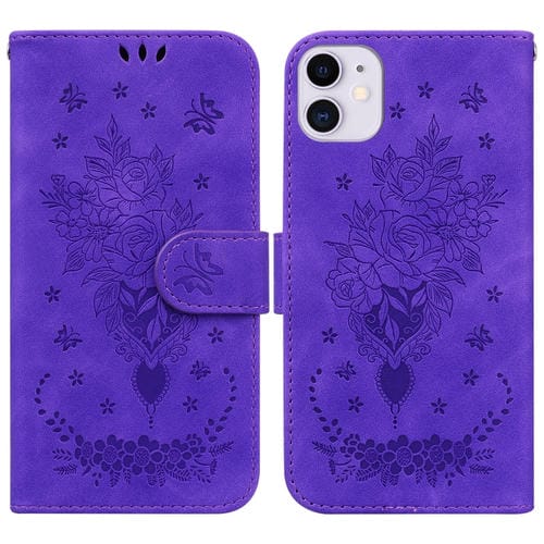 Funda para iPhone 11 Butterfly Rose de Cuero en Relieve para Teléfono (Púrpura)