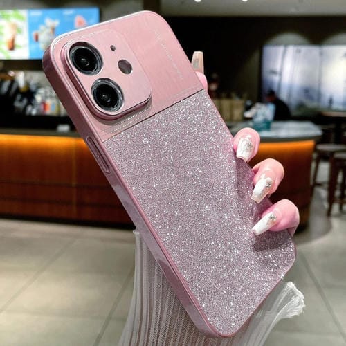 Caja de Teléfono para iPhone 11 a Prueba de Golpes con Polvo de Brillo Metálico (Rosa)