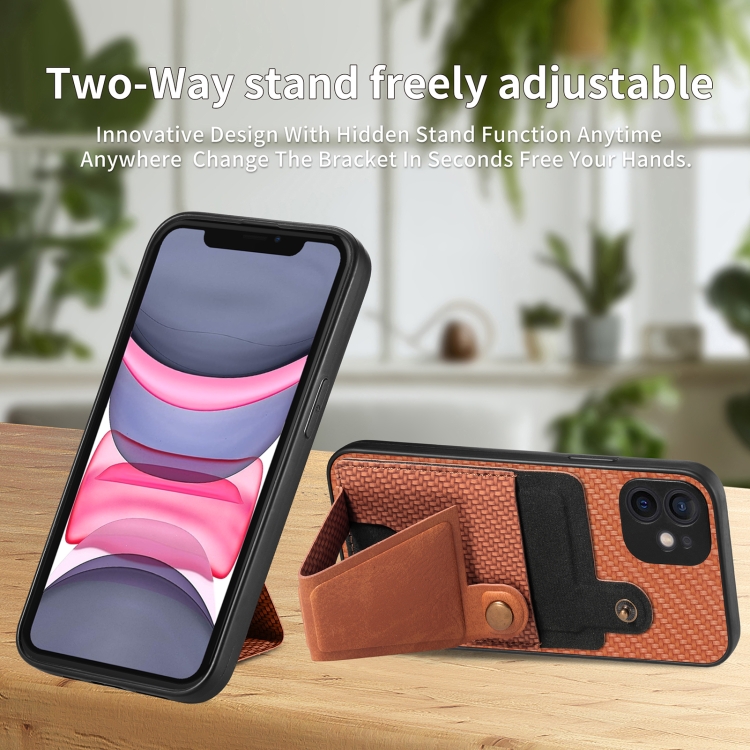 Funda para teléfono iPhone 11 Fibra de Carbono Flip Card con Soporte en Forma de K (Marrón)