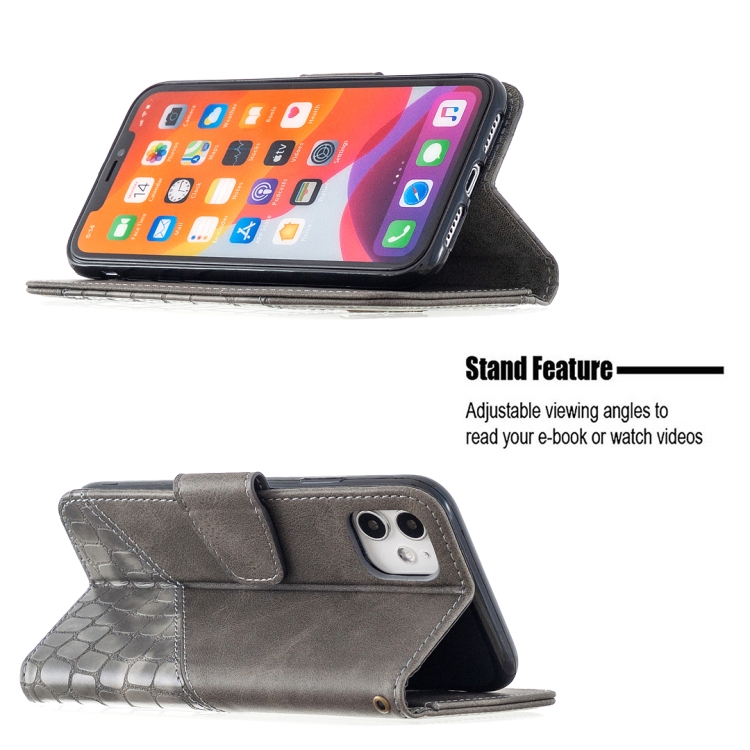 Funda para iPhone 11 Cocodrilo Textura Horizontal Flip PU Cuero con Billetera Soporte y Ranuras para Tarjetas (Gris)