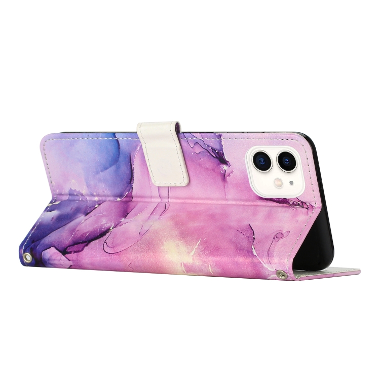 Funda de teléfono iPhone 11 Crossbody Cuero con Patrón de Mármol Pintado (Púrpura)