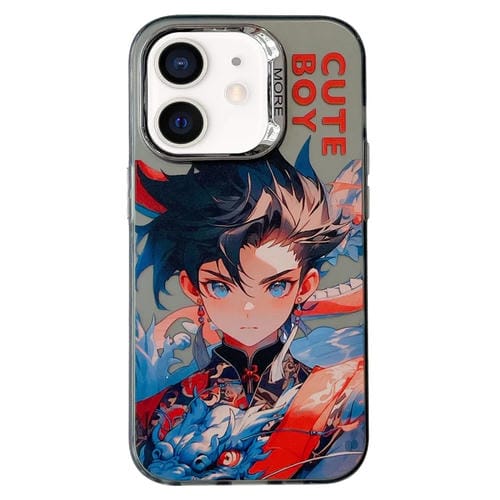 Funda para iPhone 11 Blue Eyed Boy Estilo Antiguo Chino Anillo de Lente Electrochapado PC Hybrid TPU