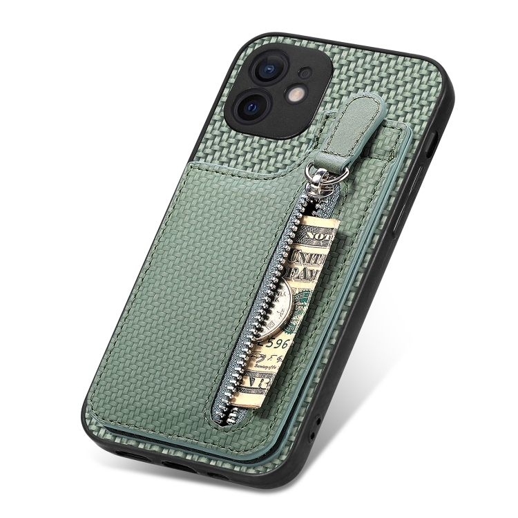 Funda de Teléfono iPhone 11 Fibra de Carbono Cremallera Vertical (Verde)