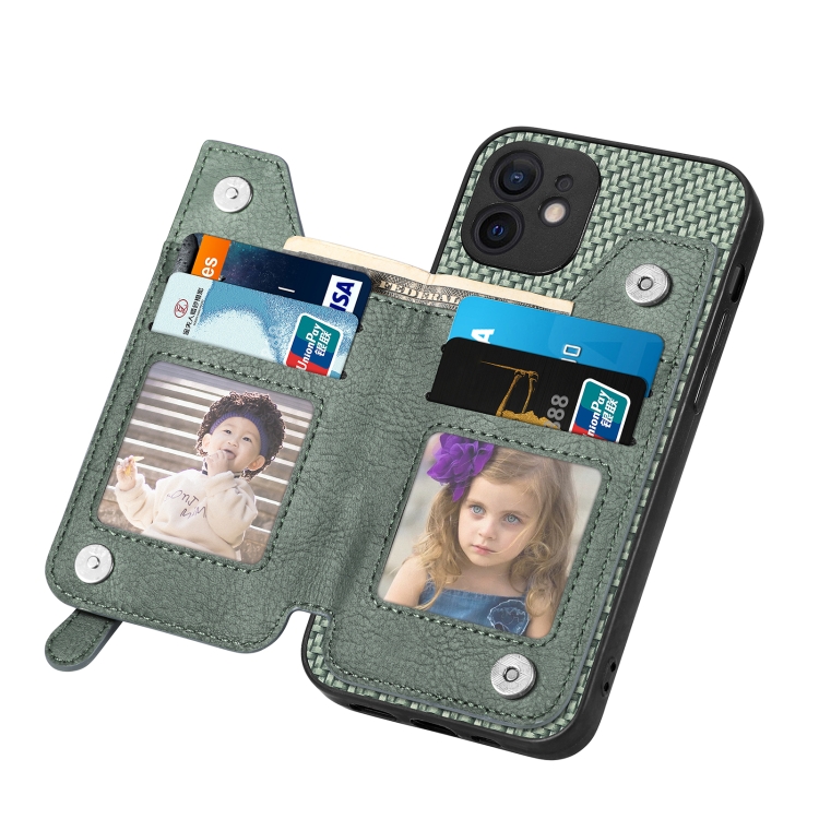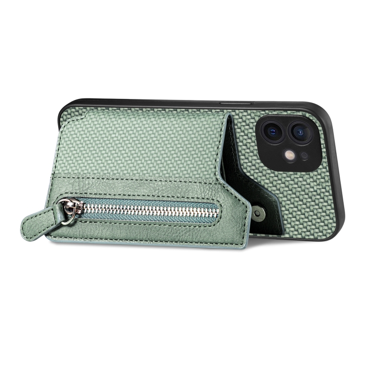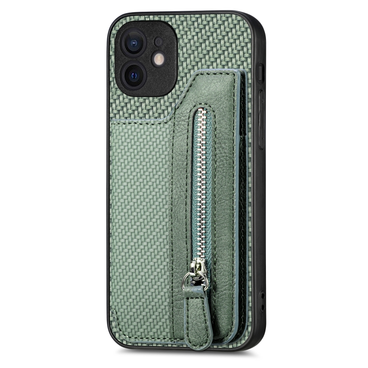 Funda de teléfono para iPhone 11 con cremallera y tapa horizontal de fibra de carbono (Verde)