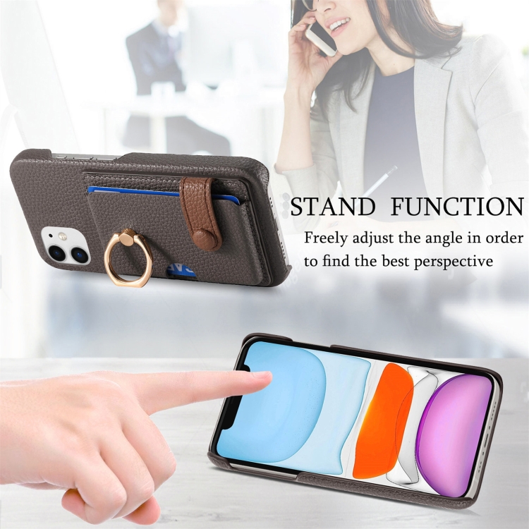 Funda para Teléfono iPhone 11 Borde de Aceite Cuero Litchi Anillo Trasero Tarjeta (Gris)