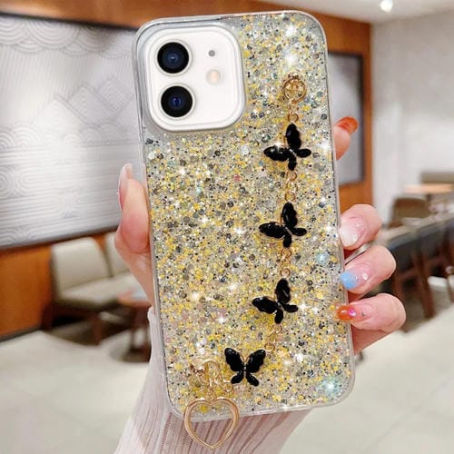 Funda para Teléfono TPU Epoxi iPhone 11 con Cadena de Mariposa y Lentejuelas Estrelladas (Amarillo)