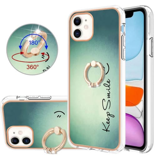 Caja de teléfono para iPhone 11 Galvanoplastia IMD de doble cara con soporte para anillo (Sonrisa)
