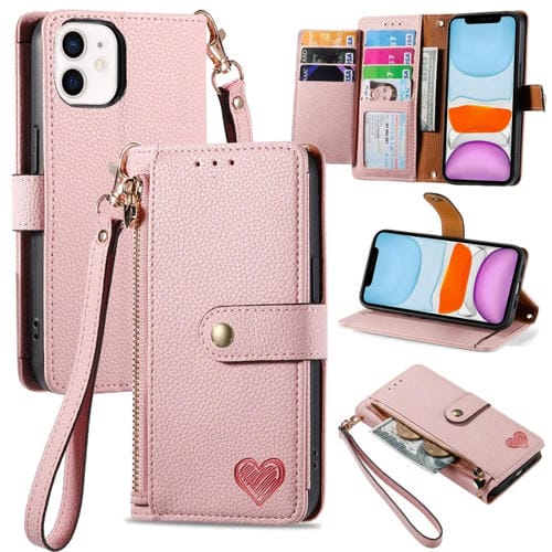 Funda para Teléfono iPhone 11 Love Zipper Lanyard Cuero (Rosa)