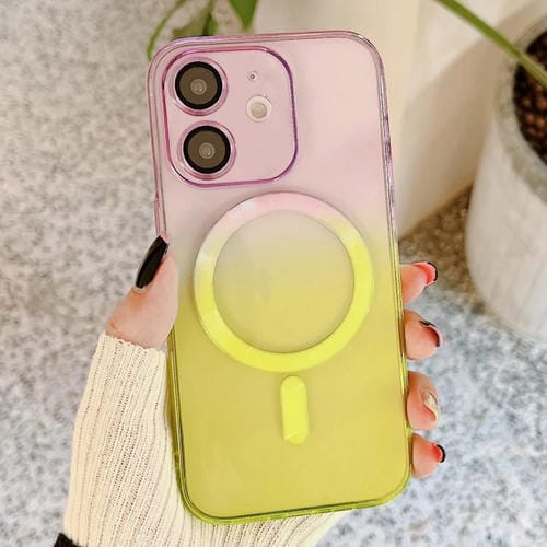 Funda para iPhone 11 Magsafe Magnetic TPU con Caja de Teléfono Acrílico (Amarillo Púrpura)