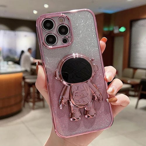 Funda para iPhone 11 Pro Astronaut Holder Gradient Glitter Powder (Rosa)