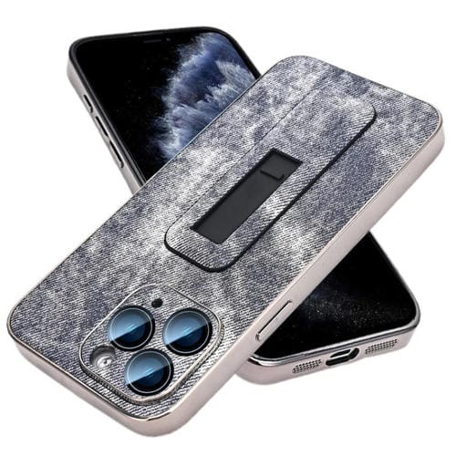Caja de Teléfono de Enfriamiento para iPhone 11 Pro con Soporte Push-Pull Galvanizado y Patrón de Mezclilla (Gris Azul)