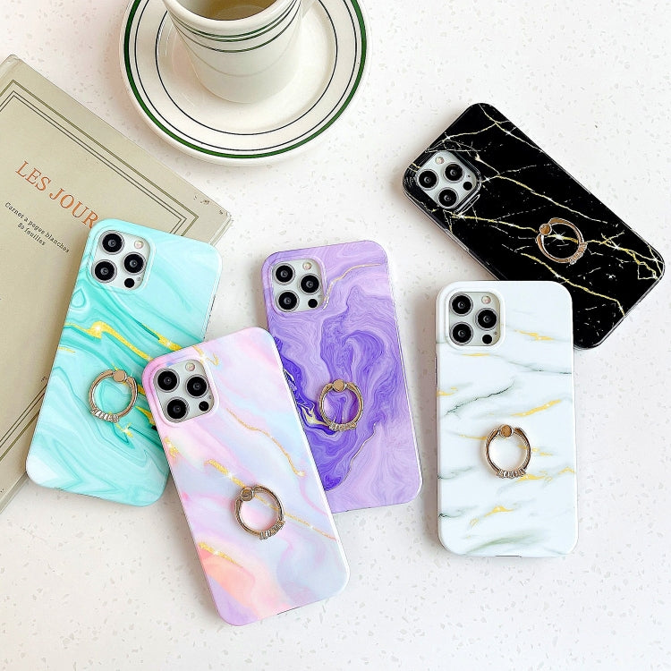 Funda para iPhone 11 Pro Modelo Mármol con Glaseado TPU y Soporte de Anillo Metálico (Verde)