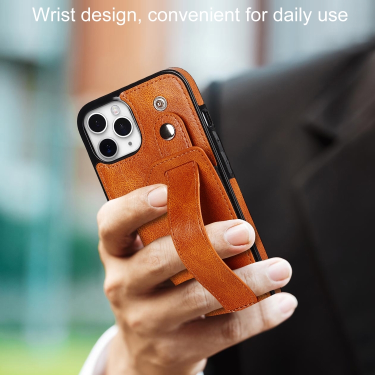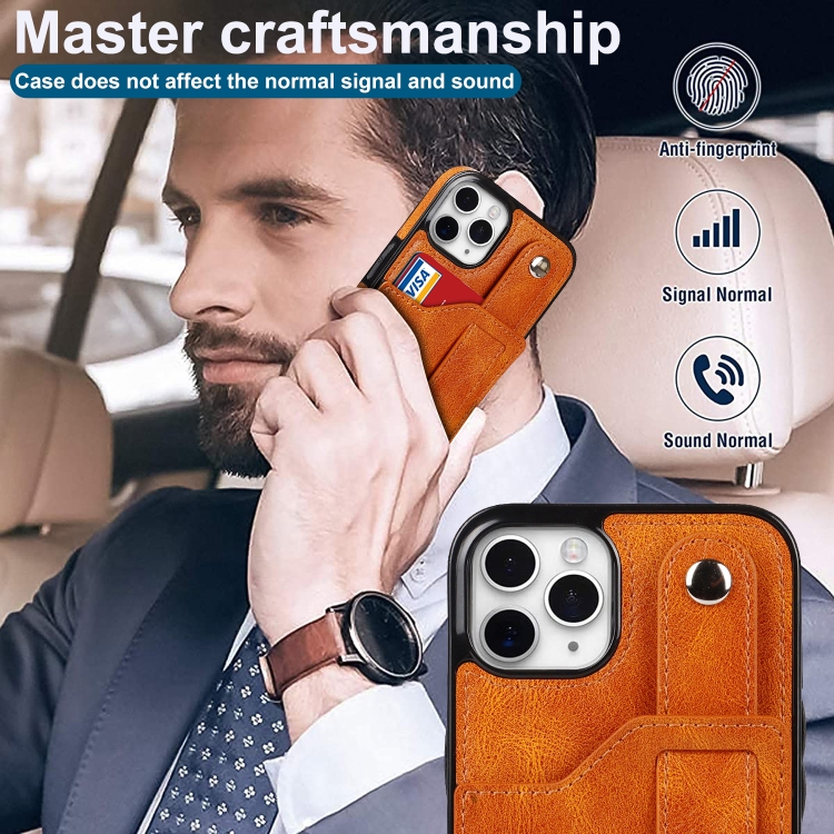 Funda para iPhone 11 Pro Crazy Horse Texture Cuero TPU y PU a Prueba de Golpes con Ranura para Tarjeta y Correa (Amarillo)