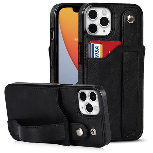Funda para iPhone 11 Pro Crazy Horse Texture Cuero TPU y PU a Prueba de Golpes con Ranura para Tarjeta y Correa para la Muñeca (Negro)