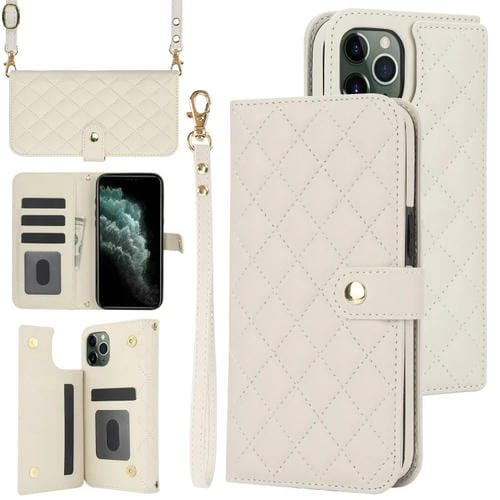 Estuche para Teléfono iPhone 11 Pro Crossbody Cuero Rómbico Multifunción (Blanco)