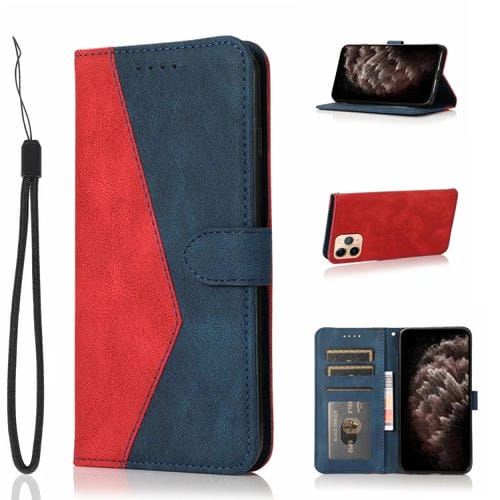 Estuche para teléfono iPhone 11 Pro Cuero con costuras de dos colores (Rojo Azul)