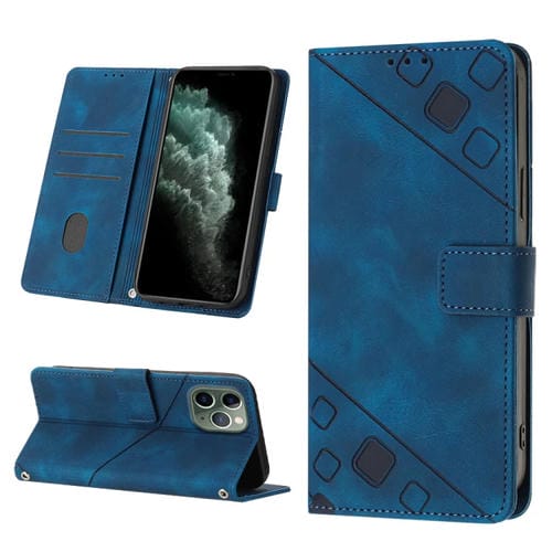 Estuche para Teléfono iPhone 11 Pro Cuero En Relieve con Tacto de Piel (Azul)