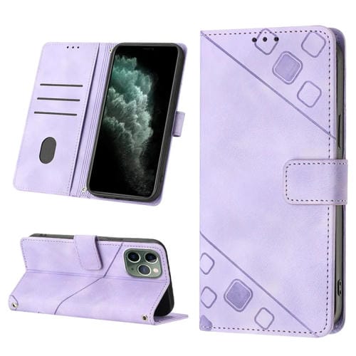 Estuche para Teléfono iPhone 11 Pro Cuero En Relieve con Tacto de Piel (Púrpura Claro)