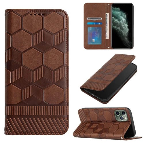 Funda de Teléfono para iPhone 11 Pro con Tapa de Cuero Magnético y Textura de Fútbol (Marrón)