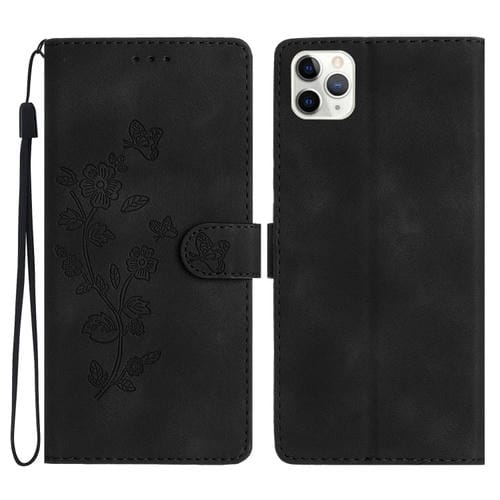Funda de teléfono Apple iPhone 11 Pro Cuero con Estampado de Flores en Relieve (Negro)