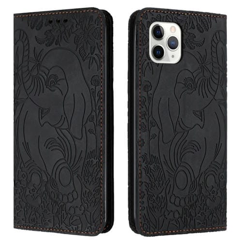 For iPhone 11 Pro Retro Elephant Embossed Leather Phone Case (Black)