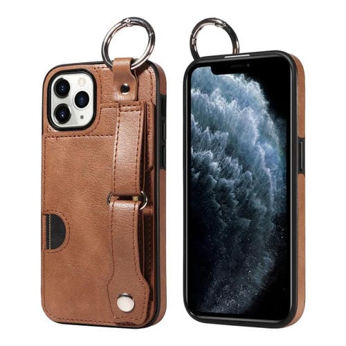 Funda para Teléfono iPhone 11 Pro con Anillo y Ranura para Tarjeta con Textura de Pantorrilla (Marrón)