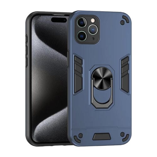For iPhone 11 Pro Phone Case with Metal Ring Holder Shockproof Cover (Blue)