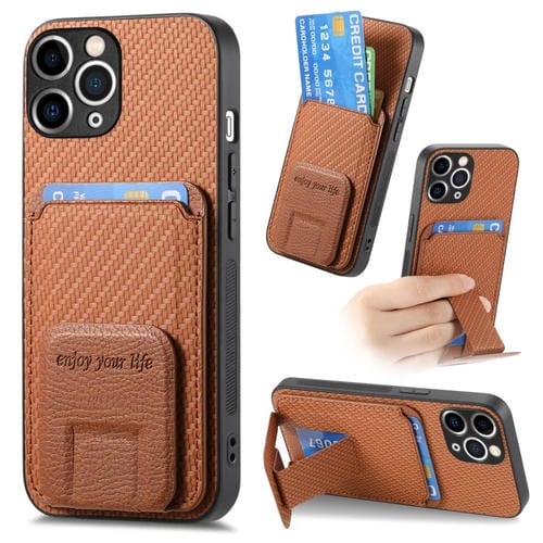 Funda para Teléfono iPhone 11 Pro con Soporte Plegable y Bolsa para Tarjetas Fibra de Carbono (Marrón)