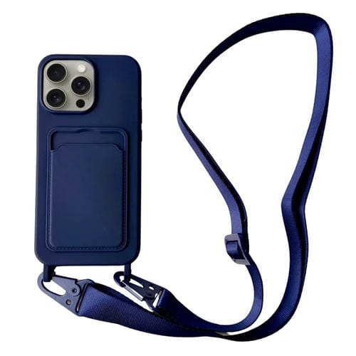 Funda para teléfono iPhone 11 Pro silicona líquida ranura para tarjeta y cordón (Azul Oscuro)