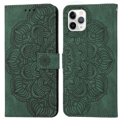 For iPhone 11 Pro Mandala Embossed Flip Leather Phone Case (Green)