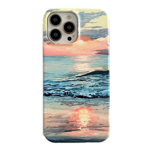Estuche para teléfono 2 en 1 iPhone 11 Pro Max con patrón de mar y pintura al óleo desmontable (Amarillo Rosa)
