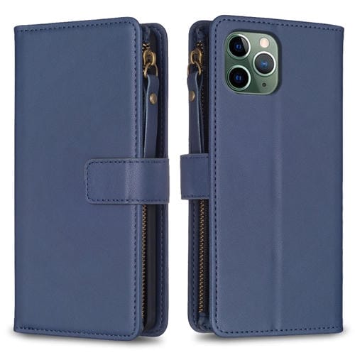Pour iPhone 11 Pro Max 9 emplacements pour cartes portefeuille à fermeture éclair étui de téléphone à rabat en cuir (bleu)