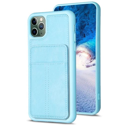 For iPhone 11 Pro Max BF28 Frosted Card Bag Phone Case with Holder (Blue)
