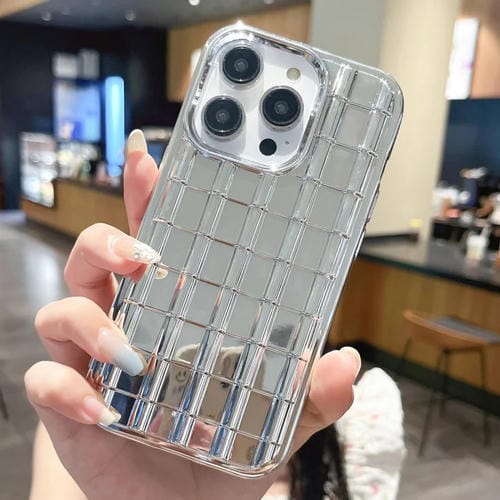 Caja de teléfono TPU para iPhone 11 Pro Max con azulejos esmaltados galvanizados (Plata)
