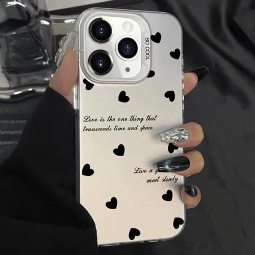Caja de Teléfono Híbrida TPU para PC iPhone 11 Pro Max Pintura Plateada (Corazones Blancos)
