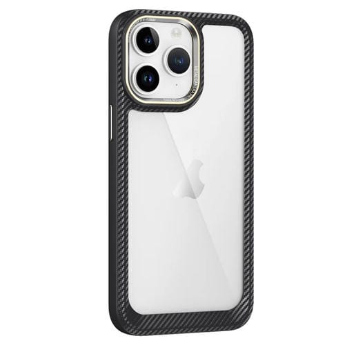 Pour iPhone 11 Pro Max Coque de téléphone avec panneau arrière transparent en fibre de carbone (noir + transparent)