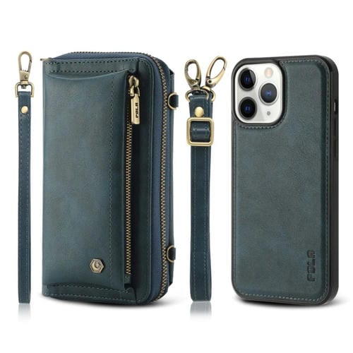 Funda de Cuero Crossbody para iPhone 11 Pro Max con Billetera y Cremallera Multifuncional (Verde)