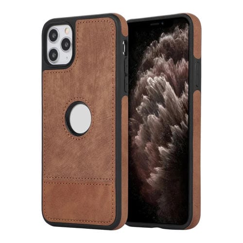 Funda para iPhone 11 Pro Max Empalme Costura Caja de Teléfono de PU con Recorte (Marrón)
