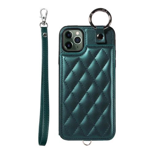 Estuche para teléfono iPhone 11 Pro Max con bolsa para tarjetas textura rómbica y cordón corto (Verde)