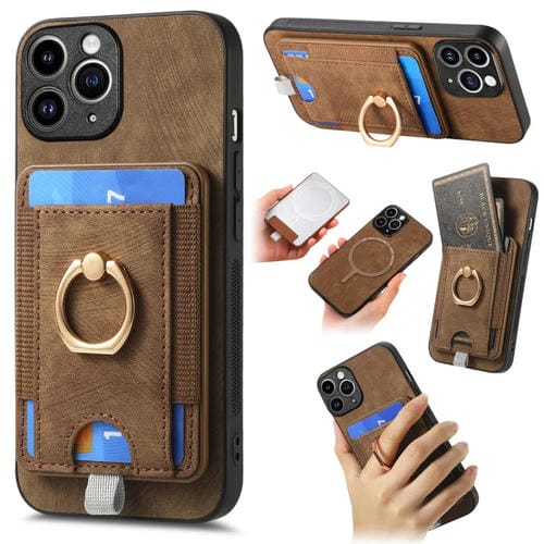 Estuche para teléfono Apple iPhone 11 Pro Max cuero con bolsa para tarjeta magnética divisible retro (Marrón)