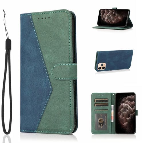 Pour iPhone 11 Pro Max Étui de téléphone en cuir à coutures bicolores (bleu vert)