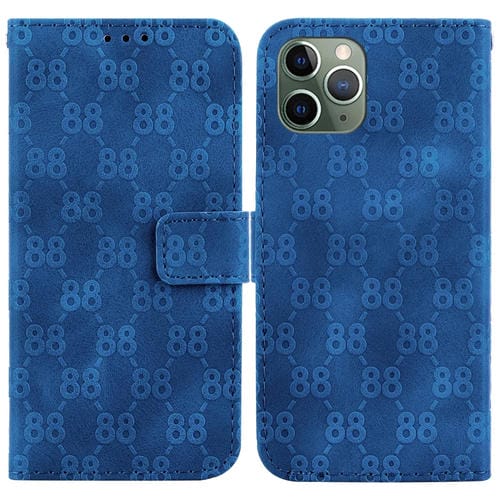 Estuche para teléfono iPhone 11 Pro Max cuero en relieve doble forma de 8 (Azul)