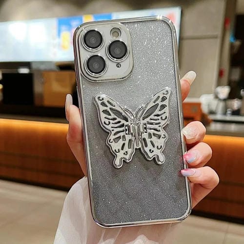 Estuche para teléfono TPU iPhone 11 Pro Max Mariposa 3D Brillo Galvanizado (Plateado Degradado)
