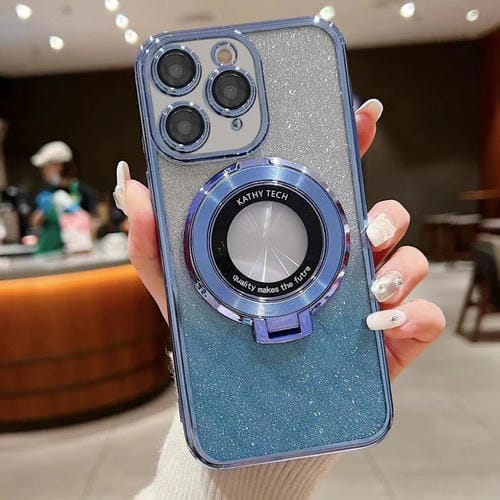 Estuche para Teléfono Magsafe iPhone 11 Pro Max con Soporte Galvanizado y Brillo Degradado (Azul)